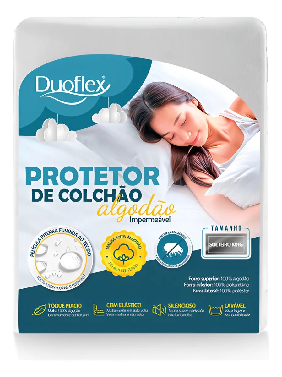 PROTETOR DE COLCHÃO SOLTEIRO KING IMPERMEÁVEL DUOFLEX – MALHA 100% ALGODÃO