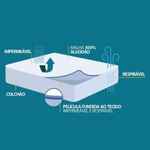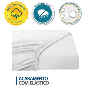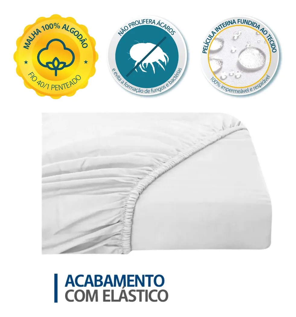 Produzido em malha 100% algodão, possui toque macio, é respirável e silencioso, sem barulho ao deitar. Conta com camada interna impermeável, que bloqueia a passagem de líquidos sem esquentar. O elástico em toda a volta proporciona encaixe firme e seguro no colchão.